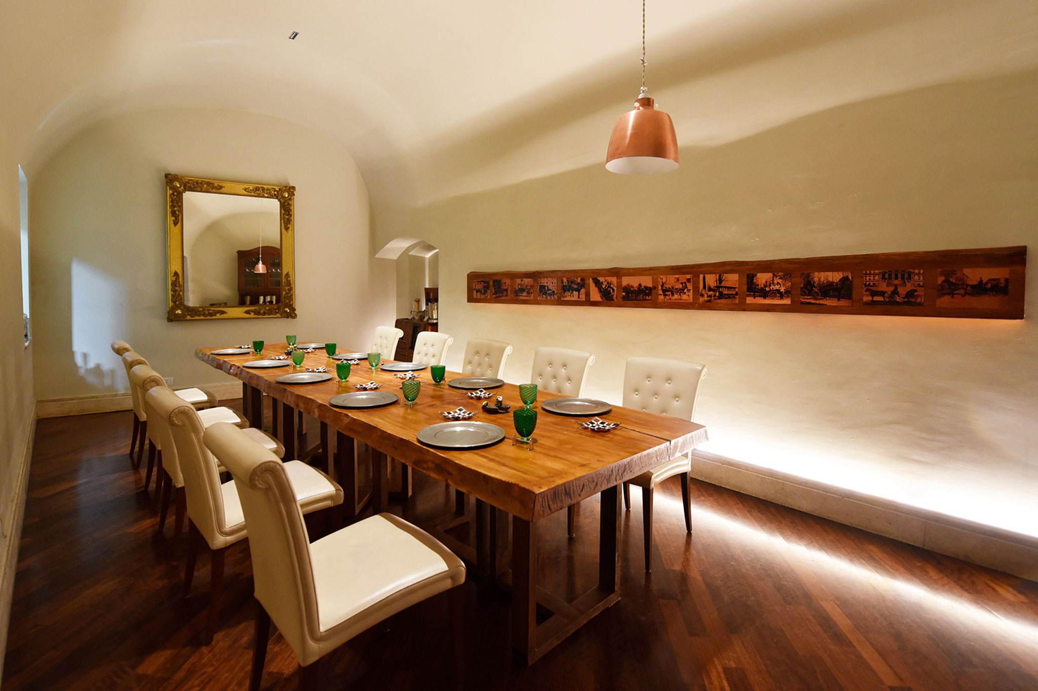 he Show Chef is an evolution of the Show Cooking. An incredible occasion where the Chef will realize the menu in front of the guests, that will be sitting around the social table, in a dedicated room. The Carriage Room is reserved for the format, so called because in the 1400s it was the place where the carriages of the ancient palace where the restaurant is located were kept.